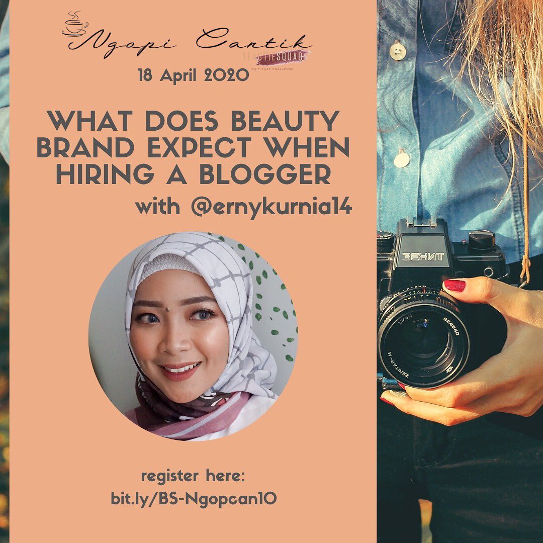 Sabtu kemarin aku seneng banget karena bisa diajak Ngopi Cantik #10 dengan tema What Does Beauty Brand Expect when Hiring a Blogger yang diadakan oleh BEAUTIESQUAD. Kalau kalian belum tahu BEAUTIESQUAD ini adalah Komunitas Beauty Blogger dan foundernya Kak Virly Ka. Lalu pengisi materinya adalah Kak Erny Kurnia, aku langsung follow instagramnya dong hehe.