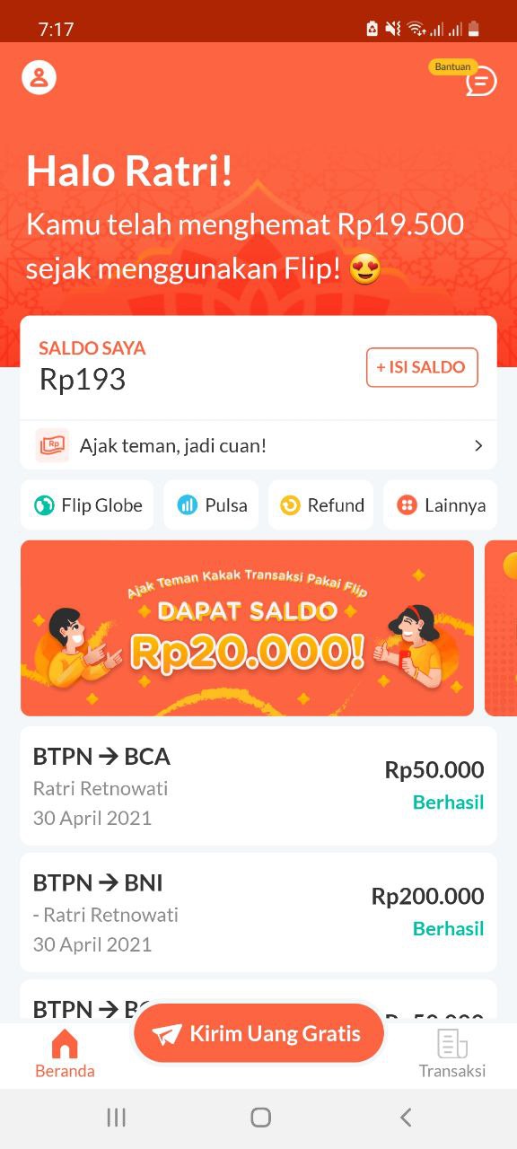 Setelah pakai aplikasi Flip aku jadi lebih hemat dan beban pikiran juga berkurang karena tidak perlu memikirkan biaya tranfer bank lain. Mau aku belanja dan stok produk jualanku juga jadi lebih mudah dan hemat. Sampai hari ini aplikasi Flip masih terinstall di HP ku dan sering aku pakai. Aplikasi Flip sangat bermanfaat dan aku ingin kalian juga merasakan manfaatnya. Aplikasi Flip juga sudah